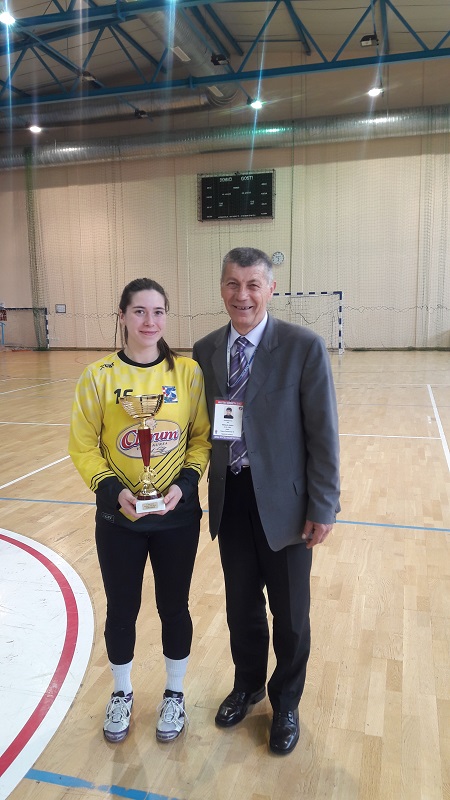 Čestitam ekipi RK Slavonka na osvajanju prvog mjesta u ženskoj konkurenciji u natjecateljskoj sezoni 2018./2019. i ostvarenoj mogućnosti plasmana u viši rang natjecanja! U ime Povjerenika natjecanja i HRS-a, pehar prvakinjama uručio je delegat utakmice gosp. Jovica Sekulić.