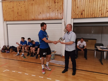 Čestitam Filipu Ivičiću iz RK Petrijevci na tituli najboljeg strijelca lige u sezoni 2018./2019.! Filip je u sezoni postigao 301 gol (11,58 golova po utakmici) te je za 100 golova u ukupnom poretku bio bolji od drugog strijelca lige Brune Kulaša sa 201 golom (7,73 gola po utakmici) iz RK Mikanovci. U ime Povjerenika natjecanja i HRS-a, pehar Filipu uručio je delegat utakmice gosp. Vanja Banović.
