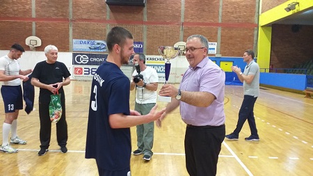 Čestitam ekipi RK Osijek 2 na osvajanju prvog mjesta u muškoj konkurenciji u natjecateljskoj sezoni 2018./2019. i ostvarenoj mogućnosti plasmana u viši rang natjecanja! U ime Povjerenika natjecanja i HRS-a, pehar prvacima uručio je delegat utakmice gosp. Ivan Vuković.